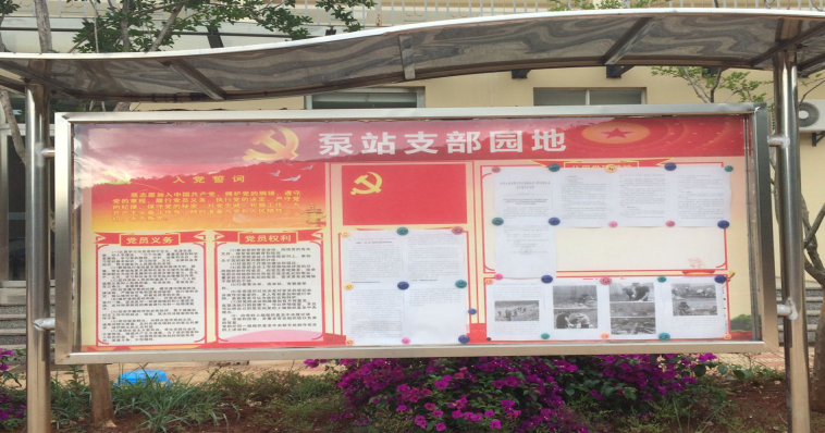 2015年中共云南水投牛栏江滇池补水AYX爱体育有限公司泵站支部委员会为提高党建工作服务水平,促进泵站全体职工学习多亿德体育,泵站支部以展板画刊模式创办了公司党建宣传微窗口——泵站支部园地。